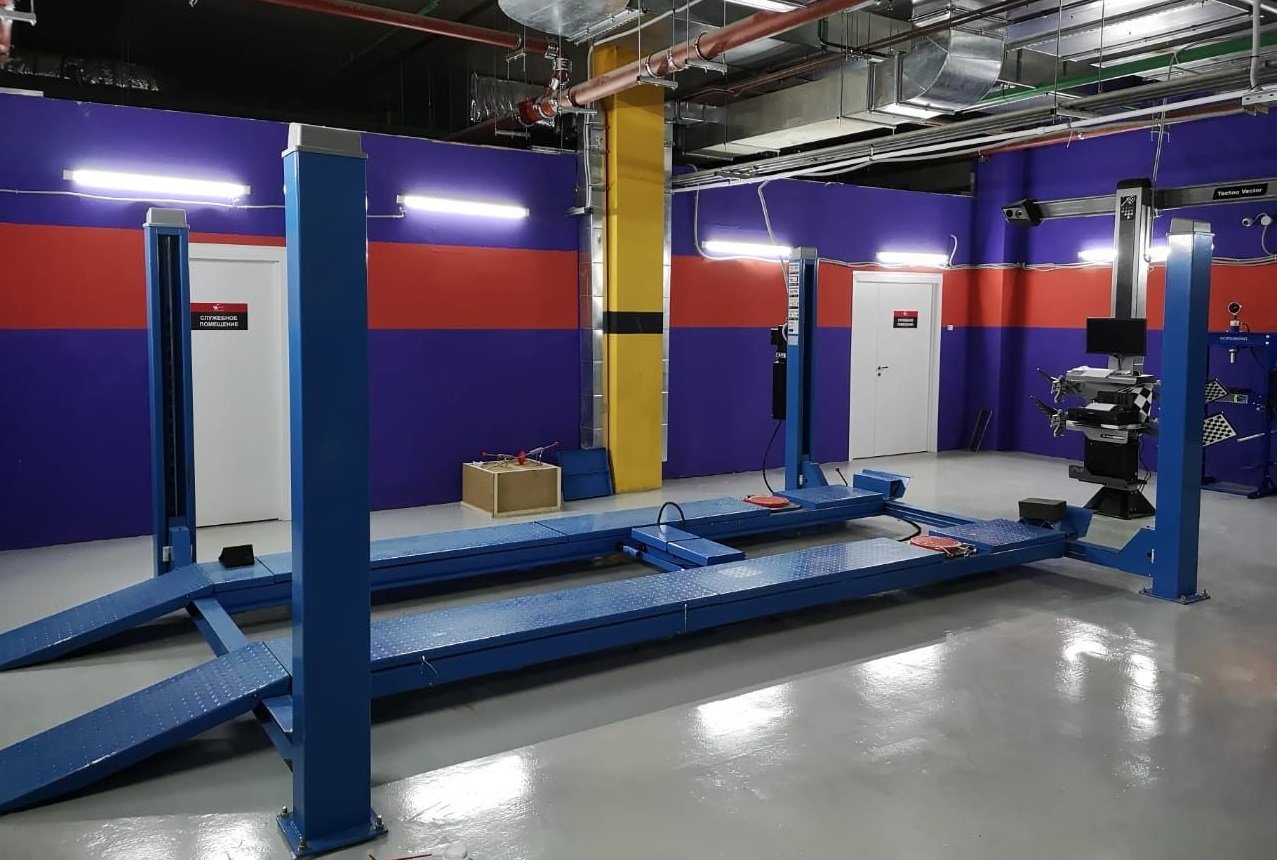 Оборудован ограничителями заезда, предотвращающими скатывание автомашины.